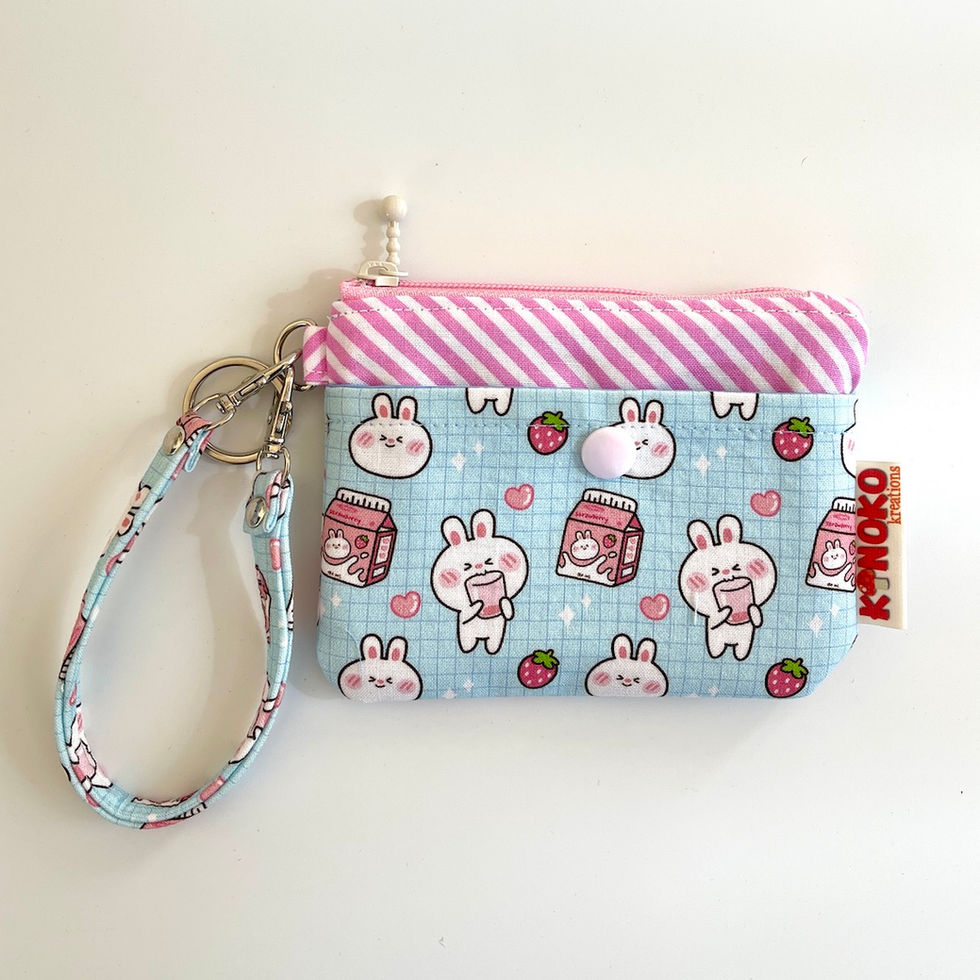 ID Pouch & Keystrap - Strawberry Milk Bunny